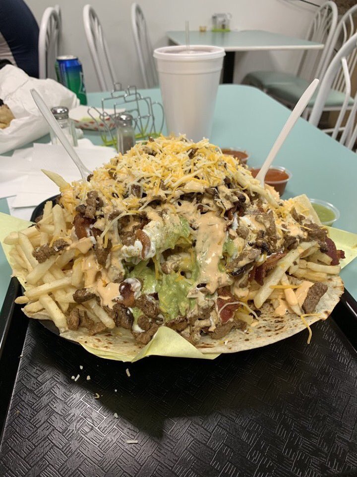 Sayulitas Mexican Food New Menu Item Rosy S Fries 7 25 Carne Asada Fries With A Flour Tortilla Under Guacamole Sour Cream Cheese Chipotle Sauce And Bacon Only Sayulitas Mexican Food Currently